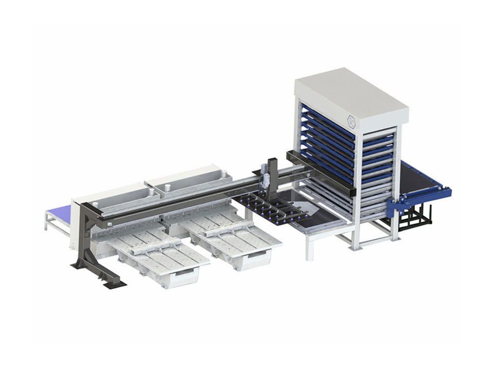 鈑金智能儲料庫用于分類儲存各類金屬板材,通過電腦控制板材的進(jìn)出、選取各層板材,與企業(yè)的MES系統(tǒng)相連接,為