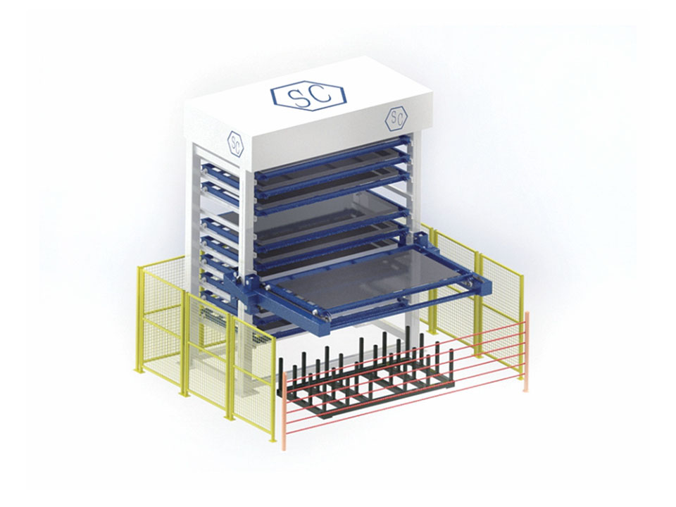 鈑金智能儲料庫用于分類儲存各類金屬板材,通過電腦控制板材的進(jìn)出、選取各層板材,與企業(yè)的MES系統(tǒng)相連接,為